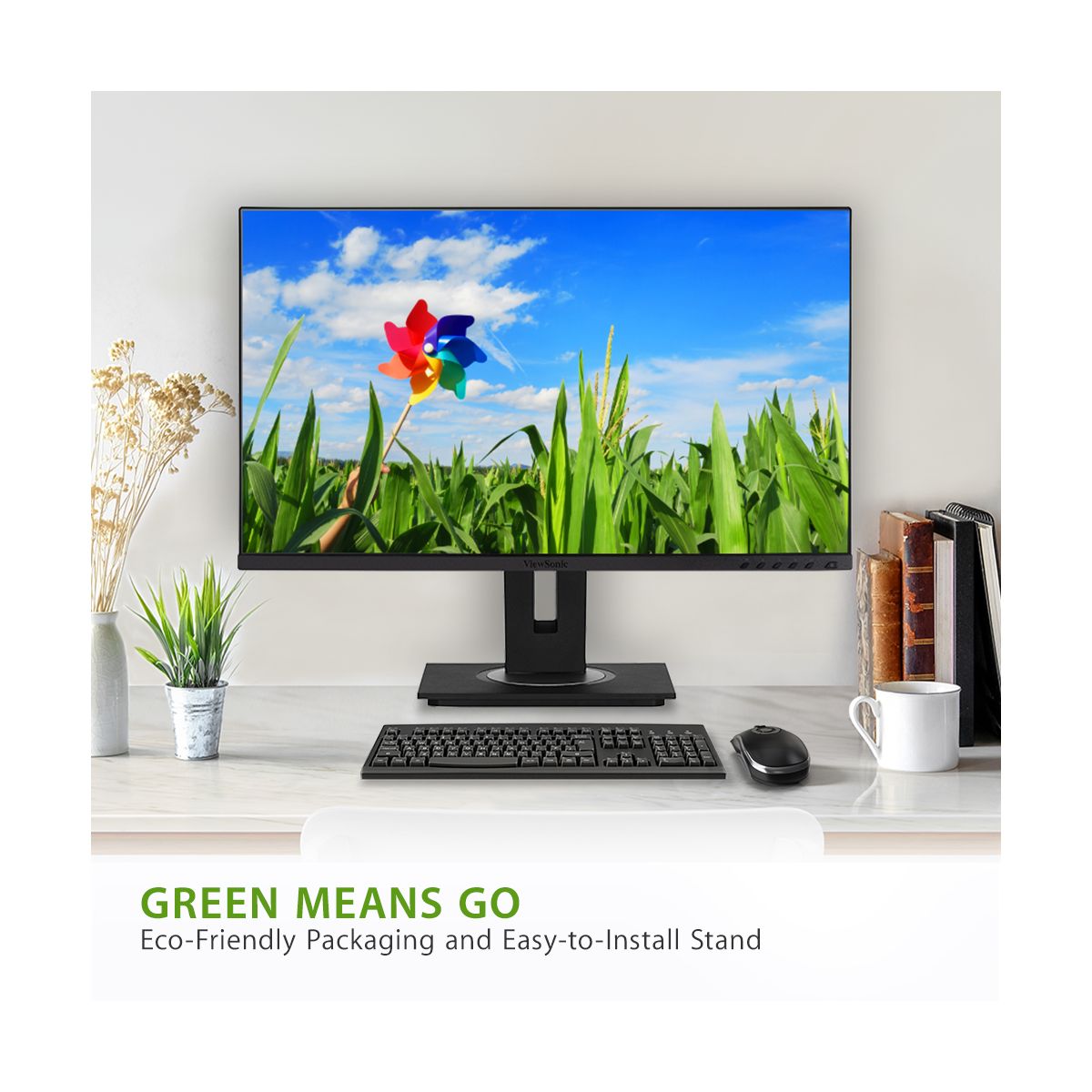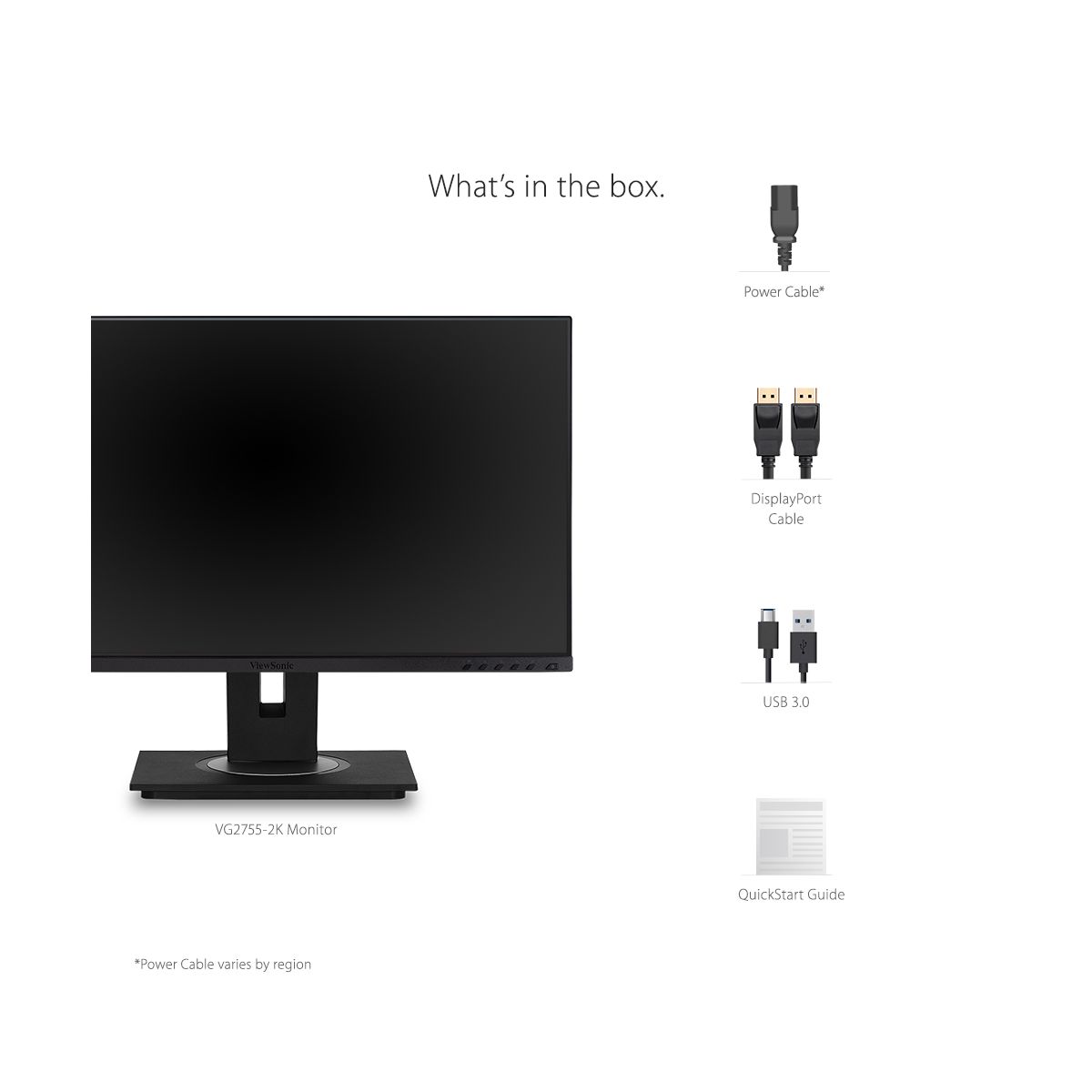 Designed for the modern day office, the ViewSonic® VG2755 monitor delivers an efficient end-to-end enterprise experience. USB 3.1 Type-C connectivity provides charging power, video, and audio over a single connector for convenience and reduced cable clutter. SuperClear® IPS panel technology delivers wide-angle viewing and incredibly vivid colors, while 3-sided thin bezel design provides a seamless viewing experience for multi-monitor setups. For enhanced productivity, an advanced ergonomic design offers a wide range of customizable adjustments for maximum comfort including pivot, swivel, height adjustment, and tilt. With the ability to tilt an impressive 40-degrees, this 27” monitor is ideal for users who prefer to work while standing up, as well as for those who like to use their screen for group discussions. Along with USB 3.1 Type-C, additional connectivity options include HDMI, DisplayPort, VGA, and USB 3.0. This monitor is also shipped in eco-friendly biodegradable packaging, along with an easy-to-install quick release stand that makes for simple out-of-the box setup. The quick release stand also includes an integrated client mount and cable management features.. ***** Manufacturer Refurbished Product. Please note that this is a pre-owned item. - Manufacturer Refurbished