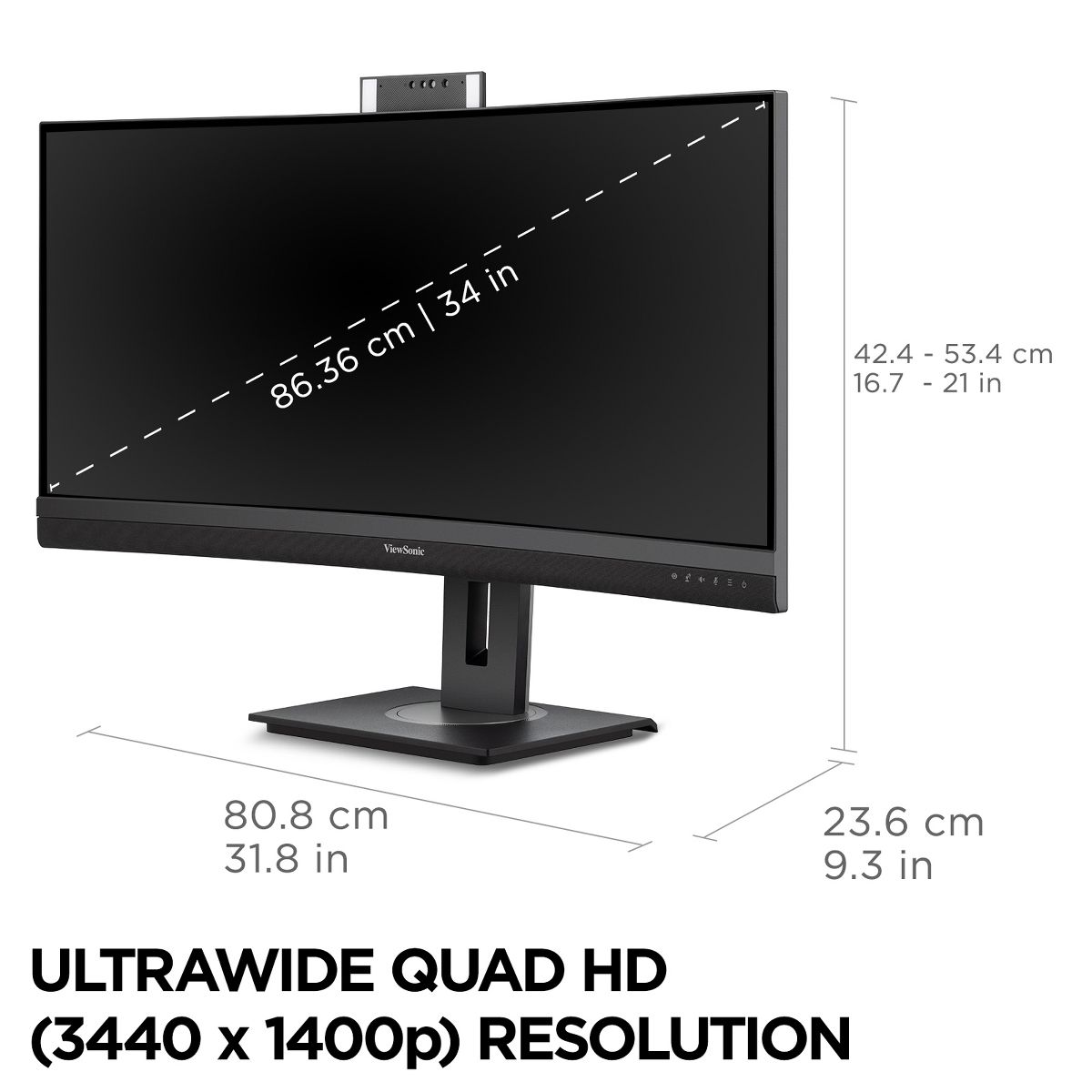 Refurbished: ViewSonic VG3457CV 34" UWQHD 1440p Video Conferencing Docking Monitor - Manufacturer Refurbished