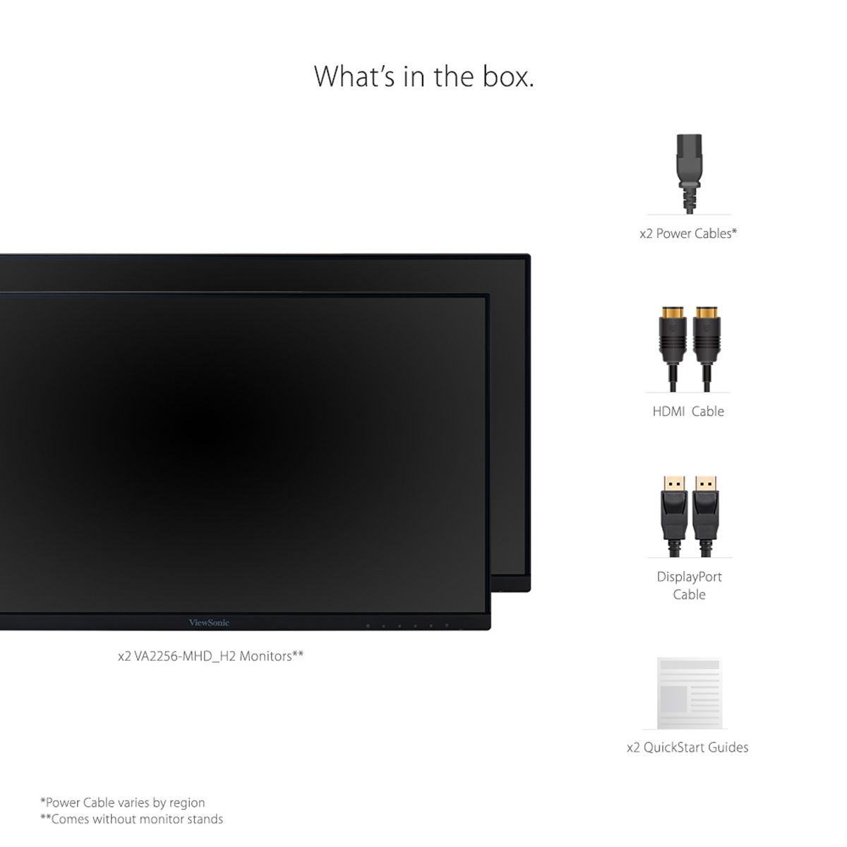 ViewSonic VA2256-MHD_H2 Dual Pack Head-Only 1080p IPS Monitors with Ultra-Thin Bezels, HDMI, DisplayPort and VGA for Home and Office