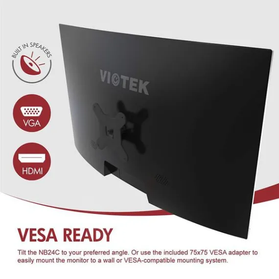 VIOTEK NB24CB 24-Inch LED Curved Monitor with Speakers, Bezel-Less Display, 75Hz 1080P Full-HD FreeSync VGA HDMI VESA - Xbox Ready (Black)