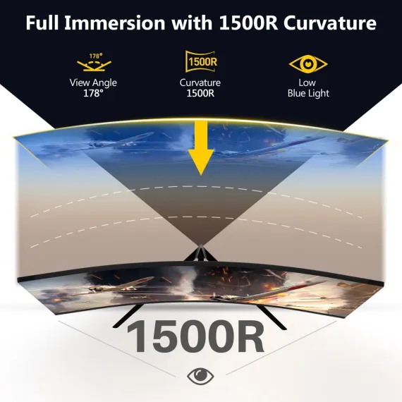 -- Curved Gaming Monitor - Equipped with 1500R curved screen, offering an immersive gaming, video playback experience.