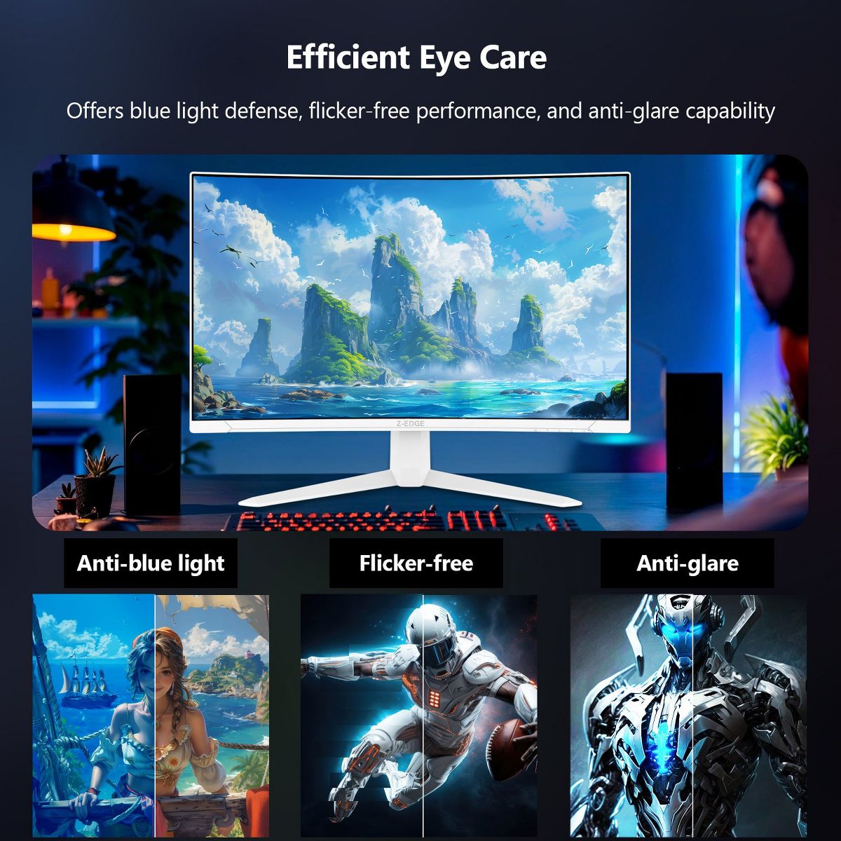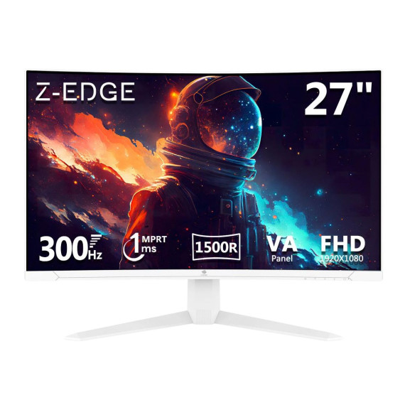 Z-EDGE 27" 300Hz Cuved Gaming White Monitor, FHD 1080P 1500R MPRT 1ms, 16.7M Colors, 2X DP 1.4 Ports and 2X HDMI 2.0 Ports