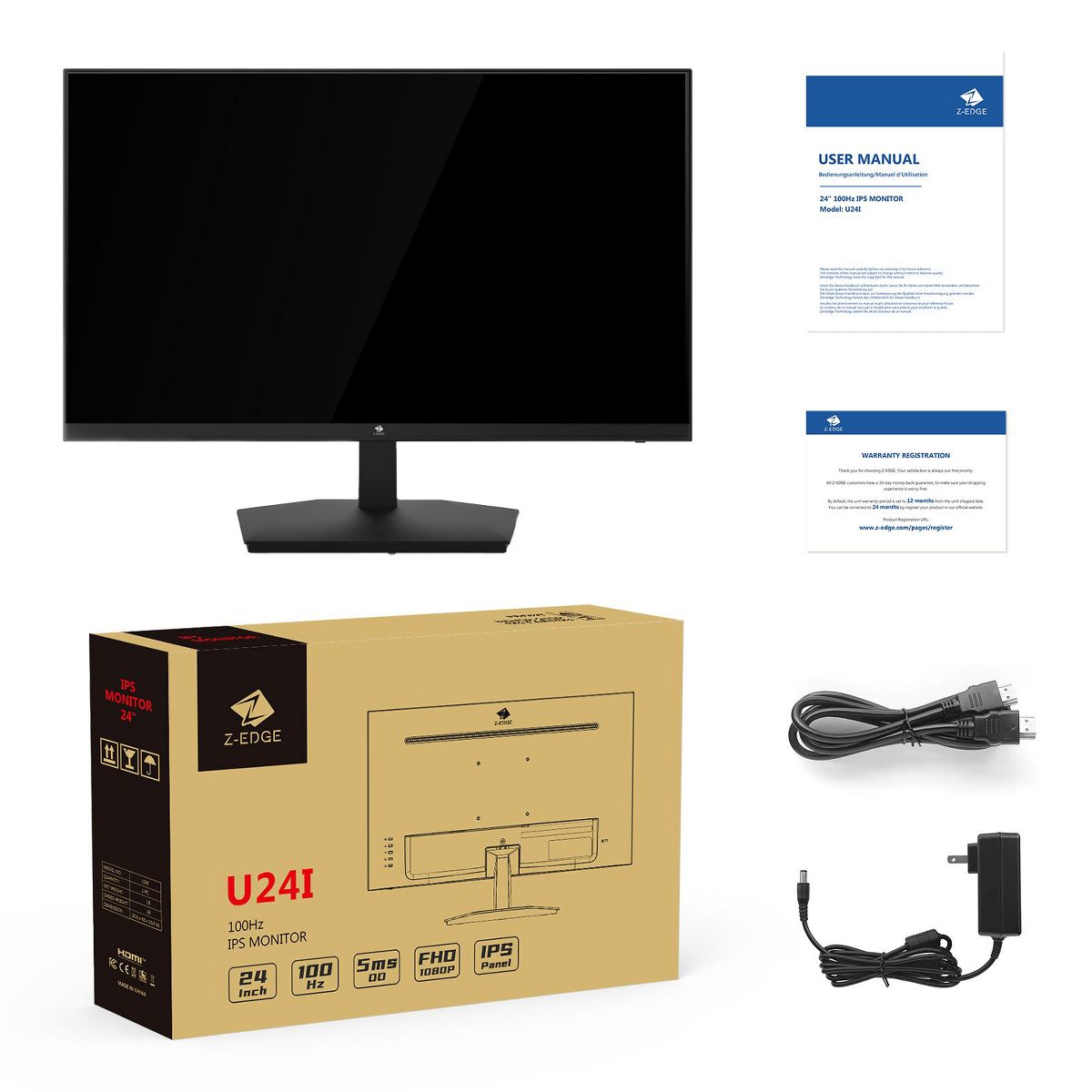 Z-EDGE U24I 24" IPS Computer Monitor, Full HD 1920 x 1080, IPS Display 100Hz PC Monitor with HDMI, VGA, Frameless