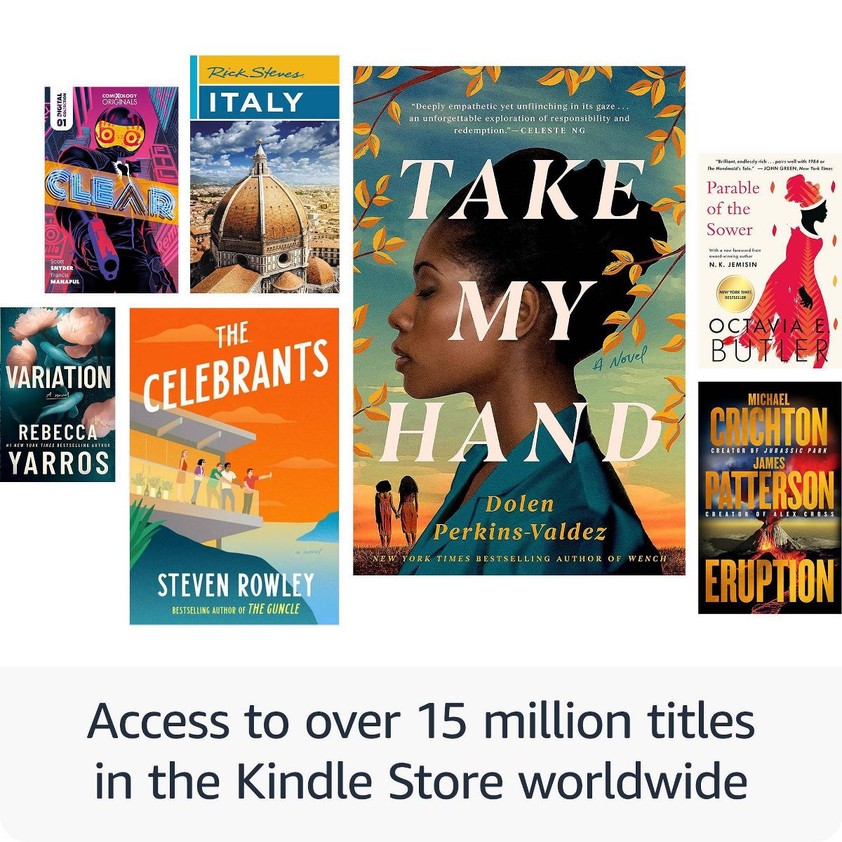Open up a world of color - The 7” Colorsoft display is easy on the eyes and brings colorful covers and content to life. The adjustable warm light, glare-free display, and weeks of battery life let you read from anywhere. Color you can’t put down - The glare-free color display adds depth to your pages and looks beautiful in any light. In the box: Amazon Kindle Colorsoft, USB-C charging cable and Quick Start Guide.