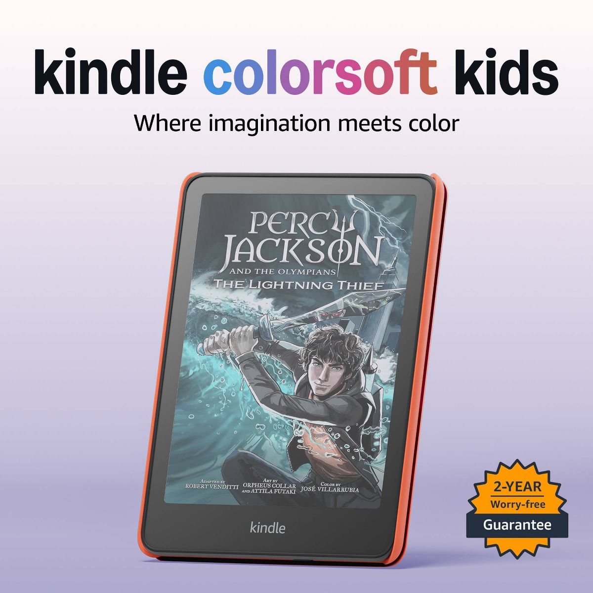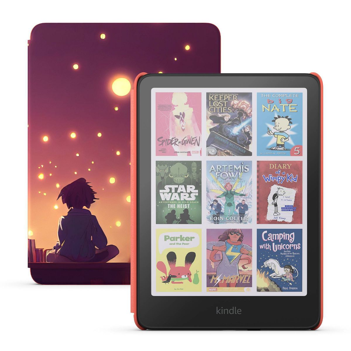 A colorful new reading world - Inspire a lifelong love of reading on the first Kindle Colorsoft Kids. The new display has paper-like color that brings book covers, comics, and graphic novels to life. Where imagination meets color - Color adds depth to their pages and looks beautiful day or night. In the box: Amazon Kindle Colorsoft Kids, USB-C charging cable, Kid- friendly cover, and Quick Start Guide