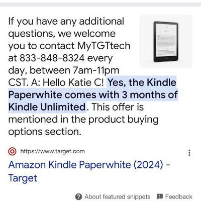 Welcome to the next chapter. With the next-generation 7” Paperwhite display, faster page turns, weeks of battery life, and an adjustable warm light — you won’t want to put it down. A faster, more responsive experience. With 20% faster performance, breeze through pages and quickly scroll through your Kindle Library. In the box: Kindle Paperwhite (12th gen, 2024 release), USB-C cable, and Quick Start Guide. This is an ad supported device that displays sponsored screensavers on the devices lockscreen.