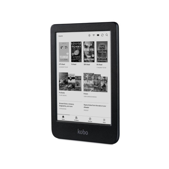 Enjoy the simple joys of reading with Kobo Clara BW, the perfect eReader for those new to eBooks. Its glare-free 6" screen lets you read in bright sunlight without reflections, and you can safely take it to the beach or pool with its full waterproof protection. For nighttime reading, Kobo Clara BW features optional Dark Mode, plus built-in ComfortLight PRO to adjust brightness and reduce blue light. Listen to Kobo Audiobooks whenever you like with Bluetooth wireless technology. With 16GB of storage, bring your entire Kobo library anywhere. Kobo Clara BW is part of our ongoing commitment to reduce our impact on the environment, and is made with recycled and ocean-bound plastic. It’s a better way to take your reading life to the next level.