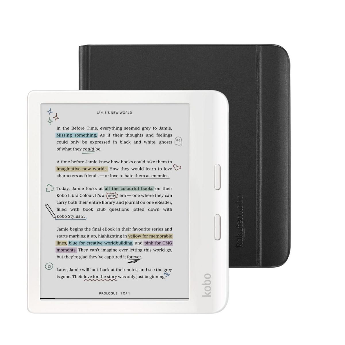 Kobo Libra Colour White eReader with Black Notebook SleepCover & AC Bundle