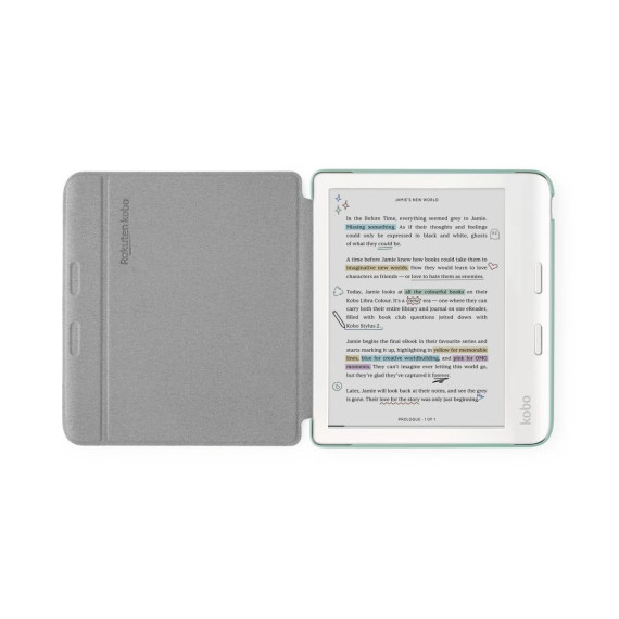 Introducing our most inspiring eReader yet: the new Kobo Libra Colour. Bring magic to your margins by annotating your pages, organizing your thoughts, and highlighting inspiring lines, all in color. With Kobo Stylus 2 compatibility, you can dive deeper into your favorite stories by marking up meaningful moments and highlighting powerful passages in the eBooks you love. Personalize your Kobo Libra Colour by choosing the case bundle that best matches your style. SleepCovers are available in Black, Butter Yellow, Dusk Blue, and Garden Green. Notebook SleepCovers are available in Sand Beige and Black. A Clear shell case is also available. Bundle options also allow adding the AC adapter and/or Stylus 2.