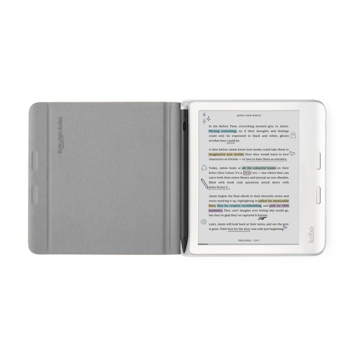 Kobo Libra Colour White eReader with Black Notebook SleepCover & AC Bundle