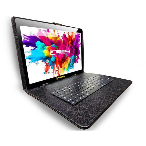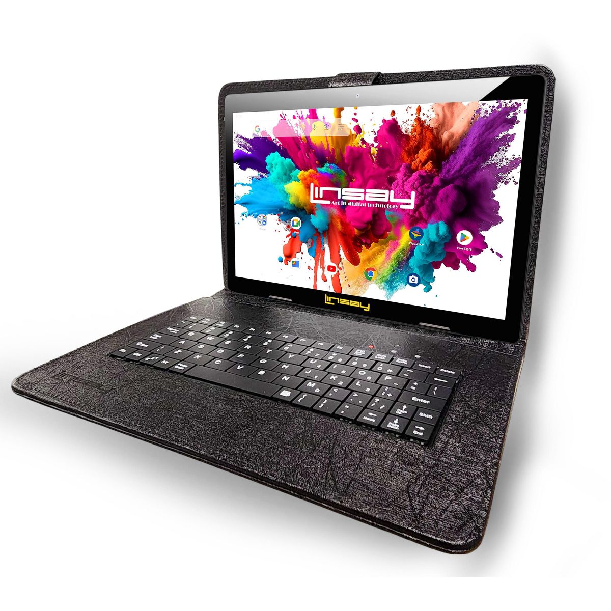 LINSAY® 10.1" OCTA CORE 128GB STORAGE ANDROID 15 BUNDLE with UNIQUE ORACLE BLACK KEYBOARD CASE and TABLET BRIEFCASE