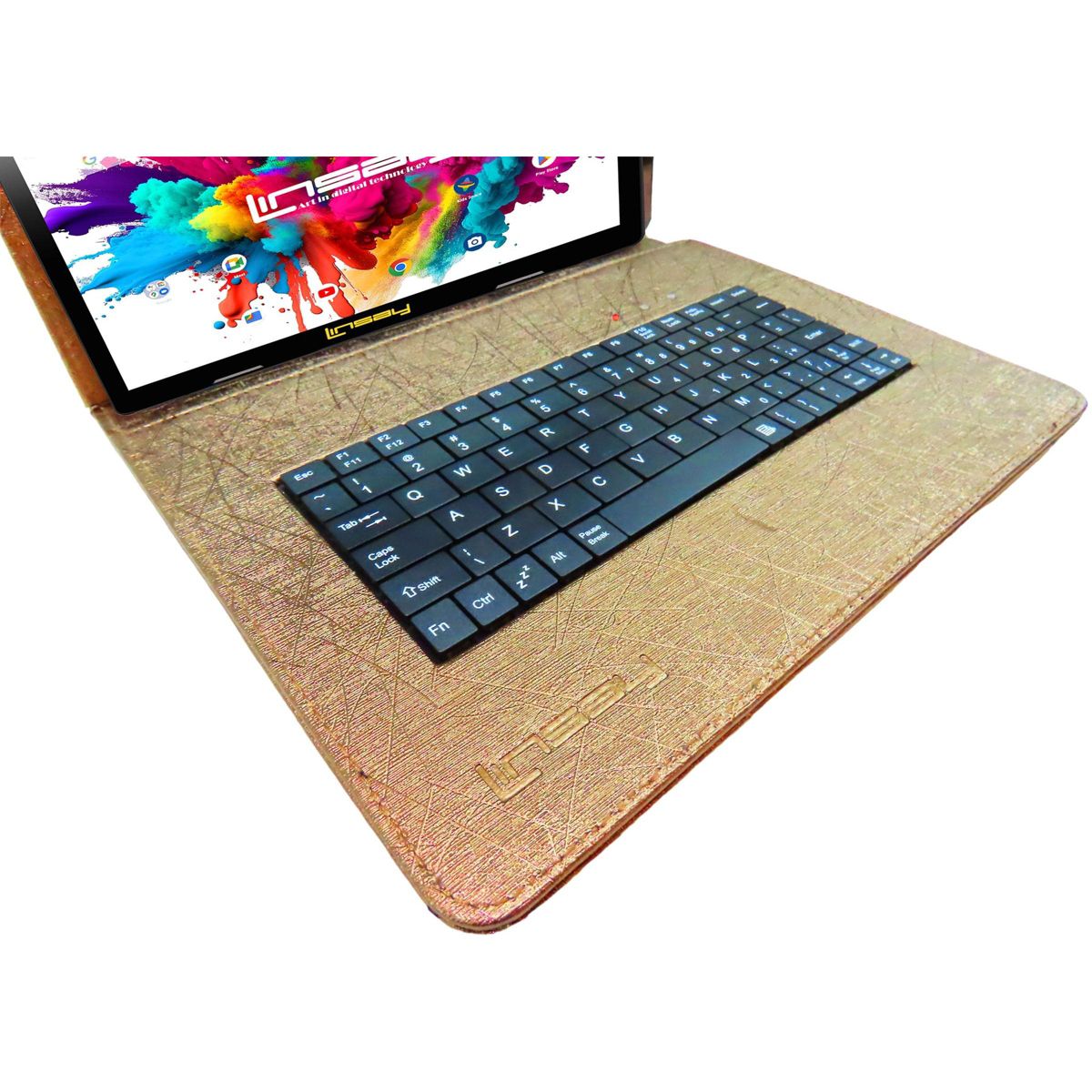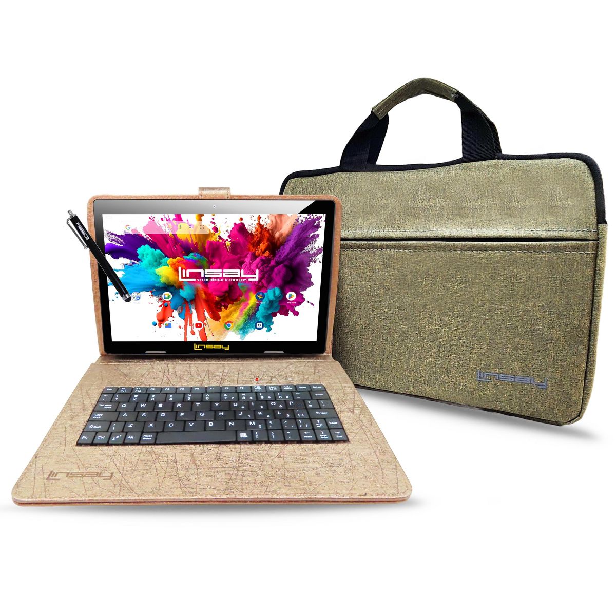 LINSAY® 10.1" OCTA CORE 128GB STORAGE ANDROID 15 BUNDLE with UNIQUE ORACLE BLACK KEYBOARD CASE and TABLET BRIEFCASE