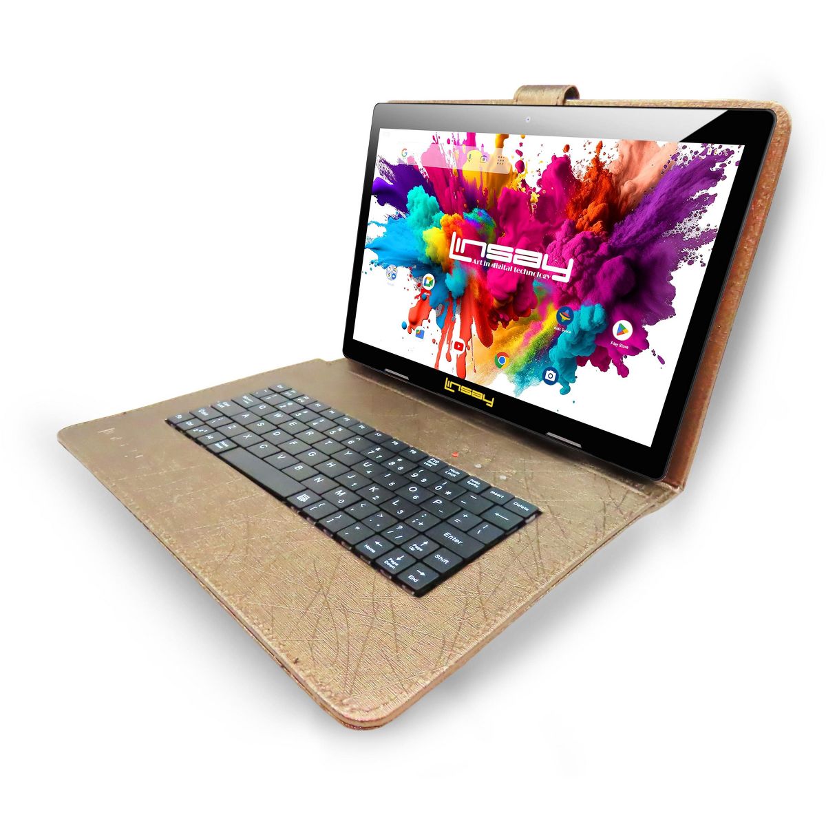 Meet the New 10.1 in. LINSAY High End Octa Core Processor with 4GB RAM 128GB Storage 1280x800 IPS Screen High Resolution Tablet and Newest Google Android OS 15 Keeps You in Touch. Stay connected with the easy-to-use LINSAY Octa Core 10 in. capacitive tablet bundle with Google Android 15. This high-tech tablet is a flexible and powerful mobile Internet solution. Multi-task with the 10.1 in. Capacitive 1280x800 IPS Touch Screen and Android 15 Operating System along with 128GB Internal Memory and customize your home screen with favorite games, social media tools, productivity apps and more. You'll find that the 10 in. tablet bundle Google Android OS 15 makes staying connected a snap. Email, browse the web and reach out to friends and family no matter where you are, right from your hand-held device. Capture and share all of life's best moments with the tablet's built-in Front and Rear Camera. Listen to your favorite music or watch TV and movies with clear audio through built-in stereo speakers. No matter how you choose to use your device, you'll find this tablet offers a powerful solution for both productivity and entertainment.
