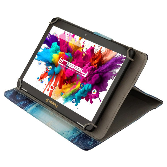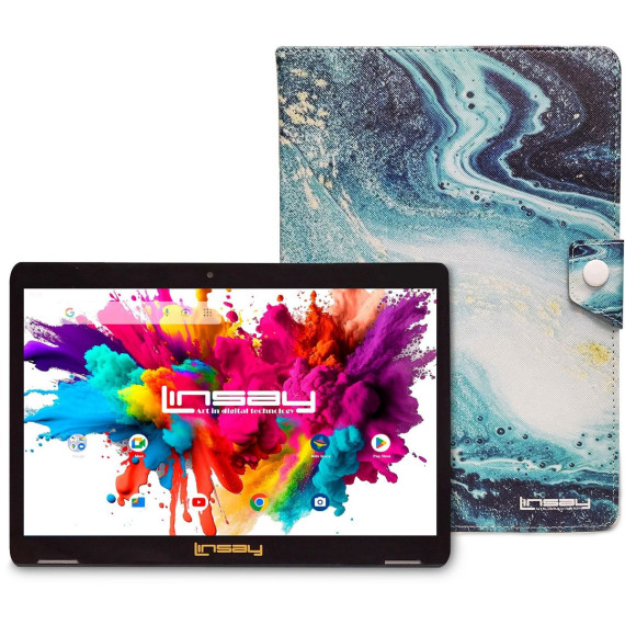 LINSAY 10.1" Octa Core 128GB Storage Android 15 Tablet with Ocean Marble Case