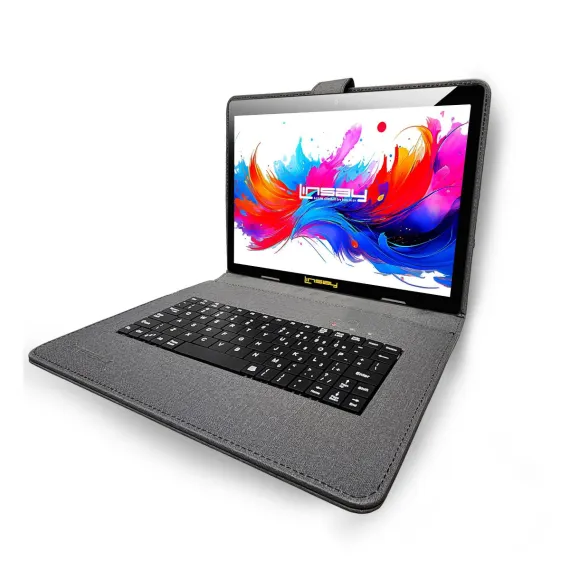LINSAY® 10.1" Octa Core 256GB STORAGE Android 15 BUNDLE with BLACK DESIGNER CLOTH KEYBOARD CASE and STYLISH COMPACT BACKPACK