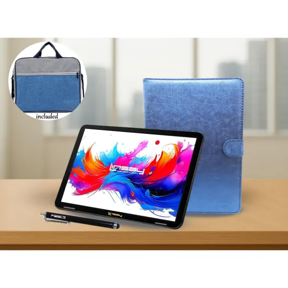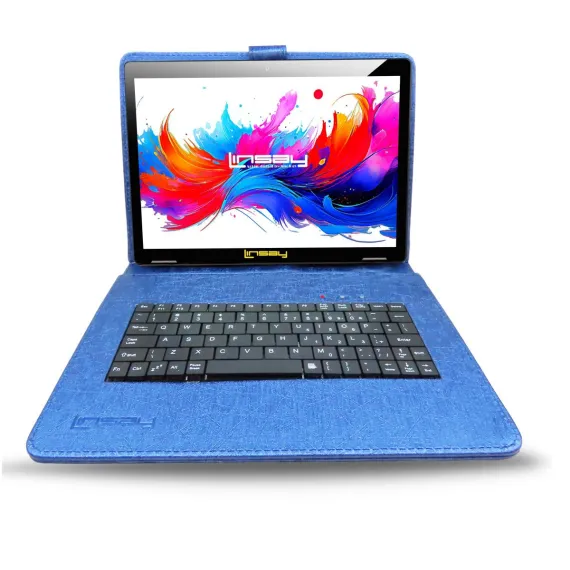 LINSAY® 10.1" Octa Core 256GB STORAGE Android 15 BUNDLE with BLUE UNIQUE ORACLE KEYBOARD CASE and TABLET BRIEFCASE