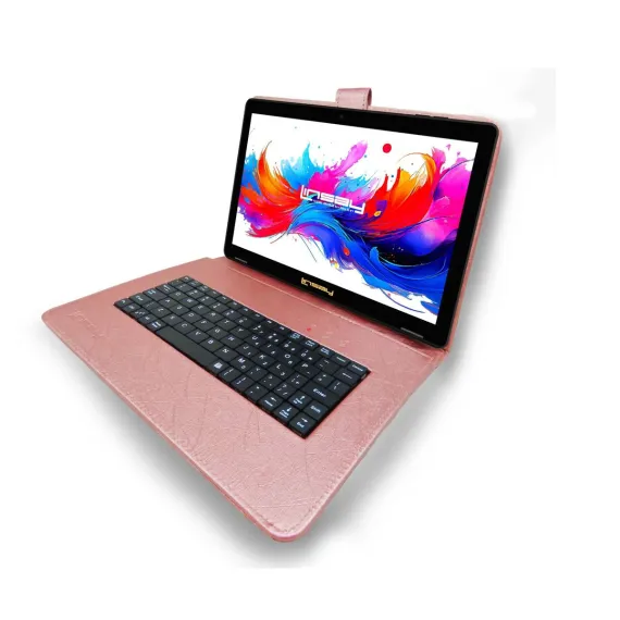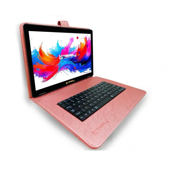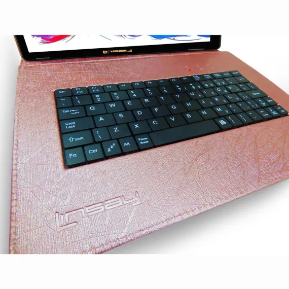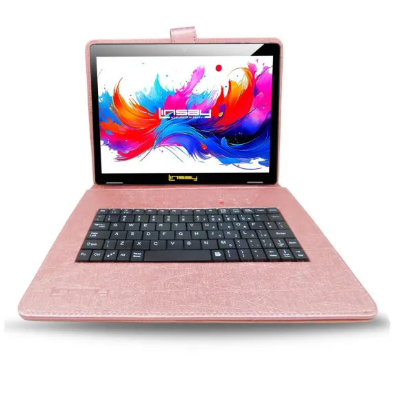 LINSAY® 10.1" Octa Core 256GB STORAGE Android 15 BUNDLE with PINK UNIQUE ORACLE KEYBOARD CASE and TABLET BRIEFCASE