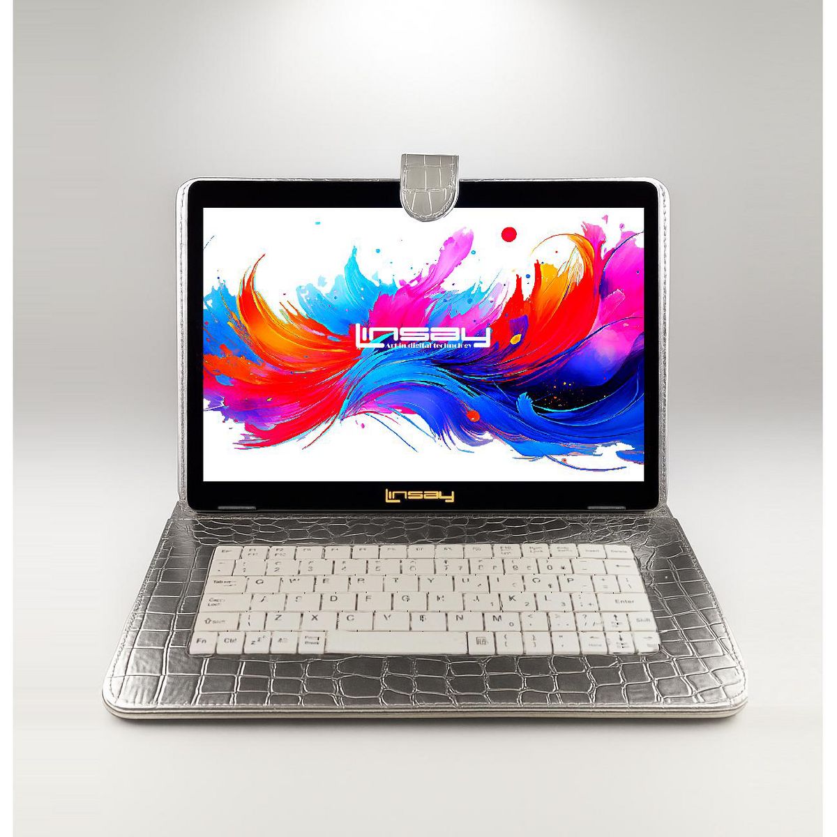 LINSAY® 10.1" Octa Core 256GB Storage Android 15 Tablet Dual Camera Android with Silver Keyboard