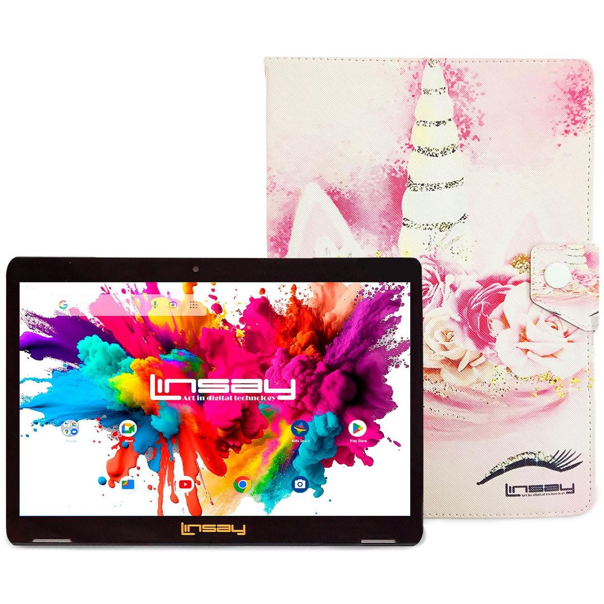 LINSAY 10.1" Octa Core Tablet 128GB Storage Android 15 with Unicorn Style Protective Case