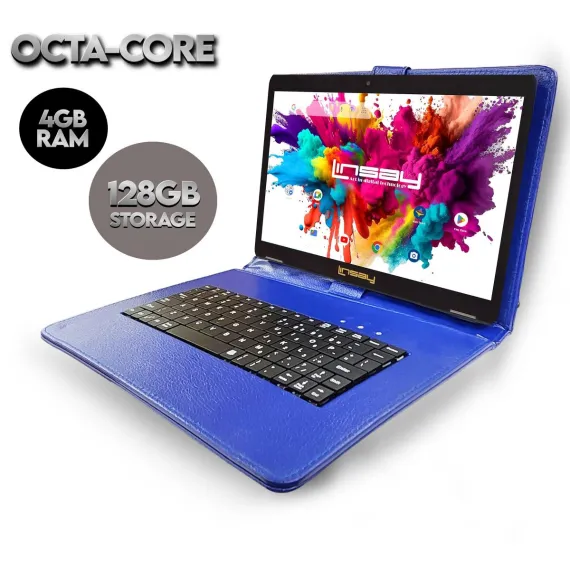 LINSAY 10.1" Tablet Octa Core 128GB Storage Android 15 Bundle with Blue Keyboard Case