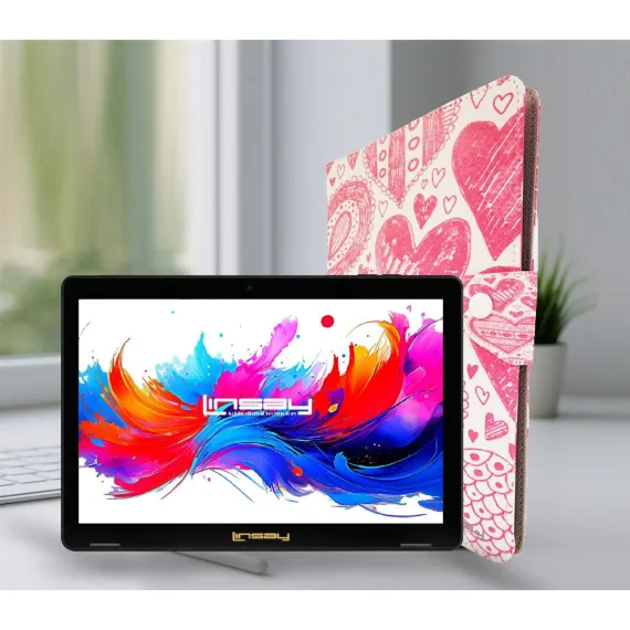 LINSAY 10.1"Octa Core 256GB Storage Android 15 Tablet with Love shape Case