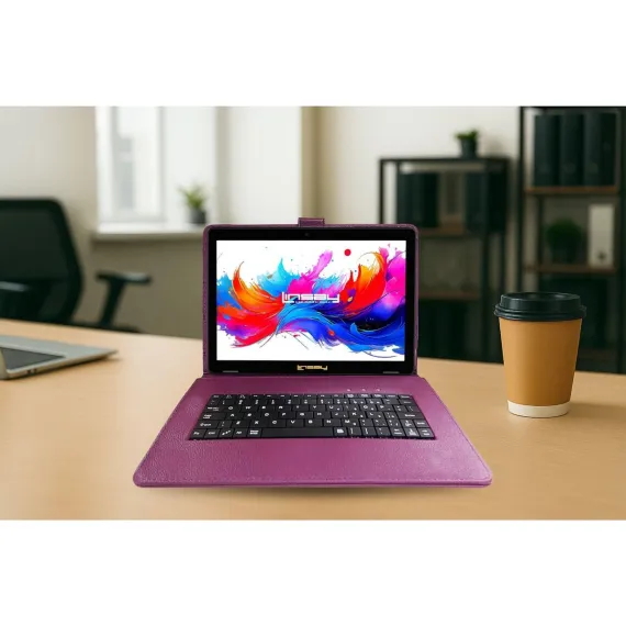 LINSAY 10.1"Octa Core 256GB Storage Android 15 Tablet with Purple Style Keyboard
