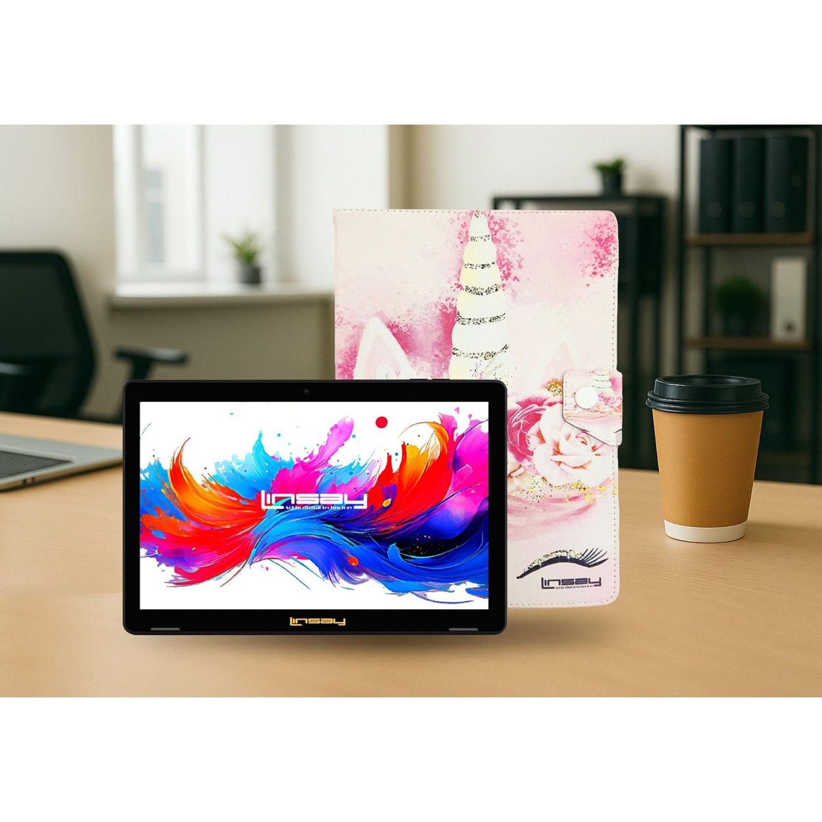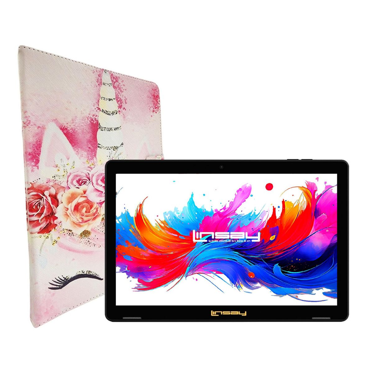 LINSAY 10.1"Octa Core 256GB Storage Android 15 Tablet with Unicorn Shape Case