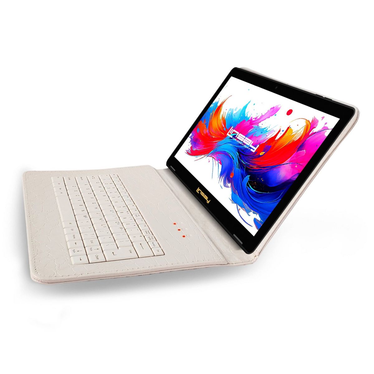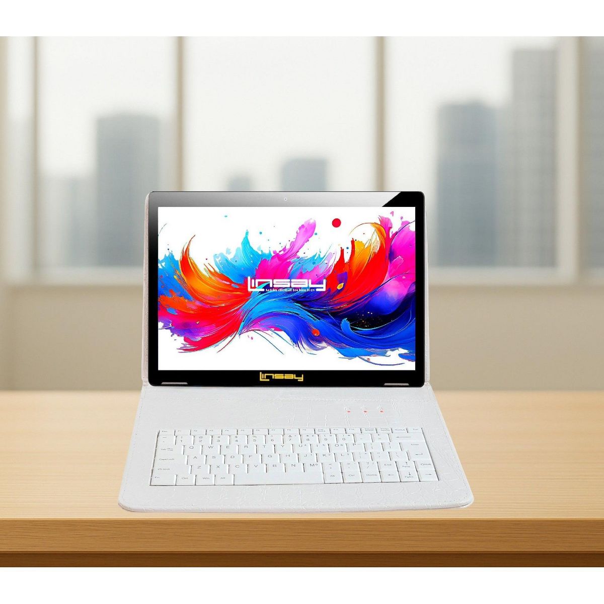 LINSAY 10.1"Octa Core 256GB Storage Android 15 Tablet with White Crocodile Style Keyboard