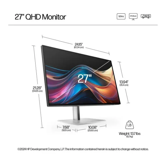 HP 727pq 27" WQHD 2560x1440 120Hz 5ms LCD IPS Monitor 8J4D8UTABA