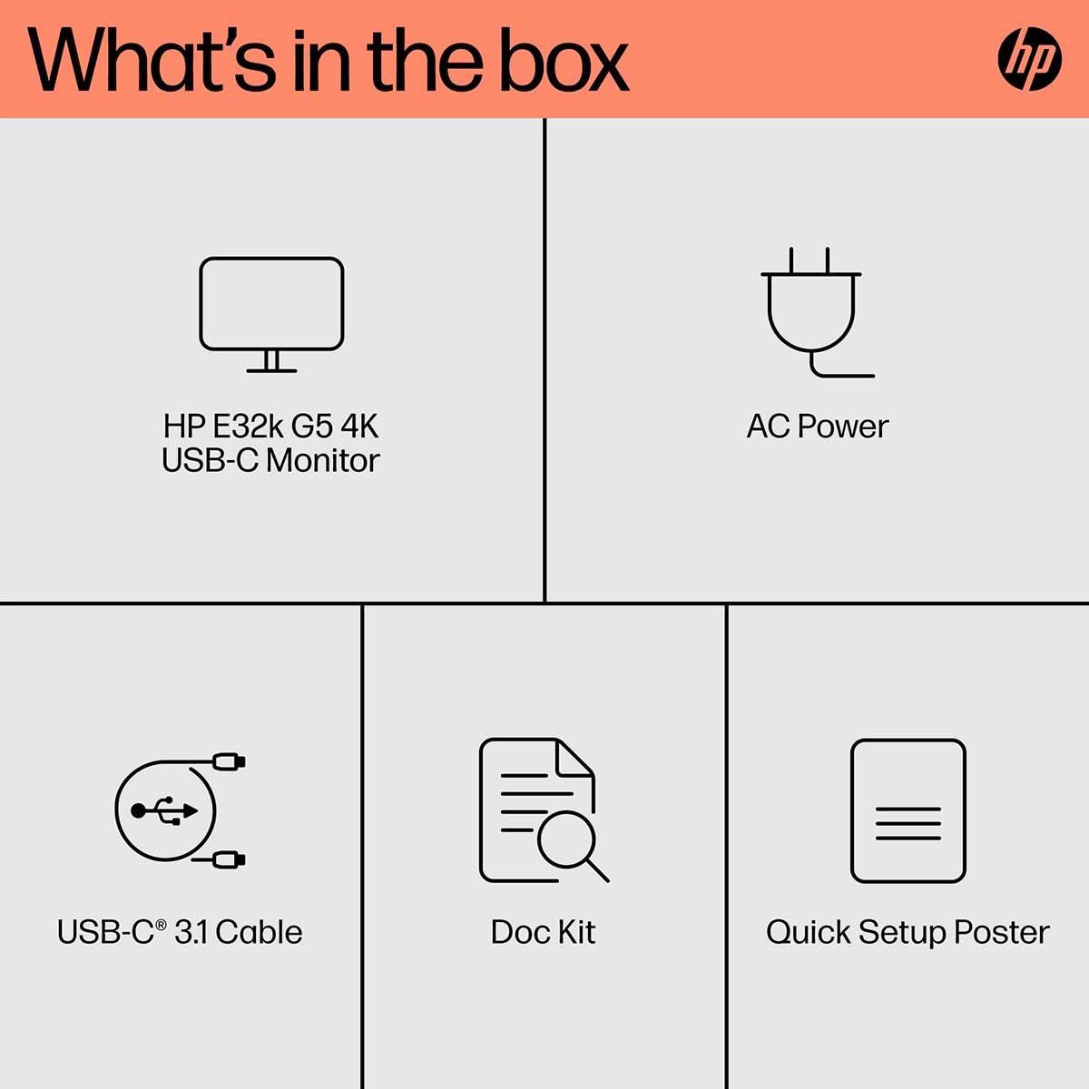 HP E32K G5 4K USB-C MONITOR - 31.5 INCH - 16:9 - 5MS - 4K UHD (3840 X 2160 @ 60