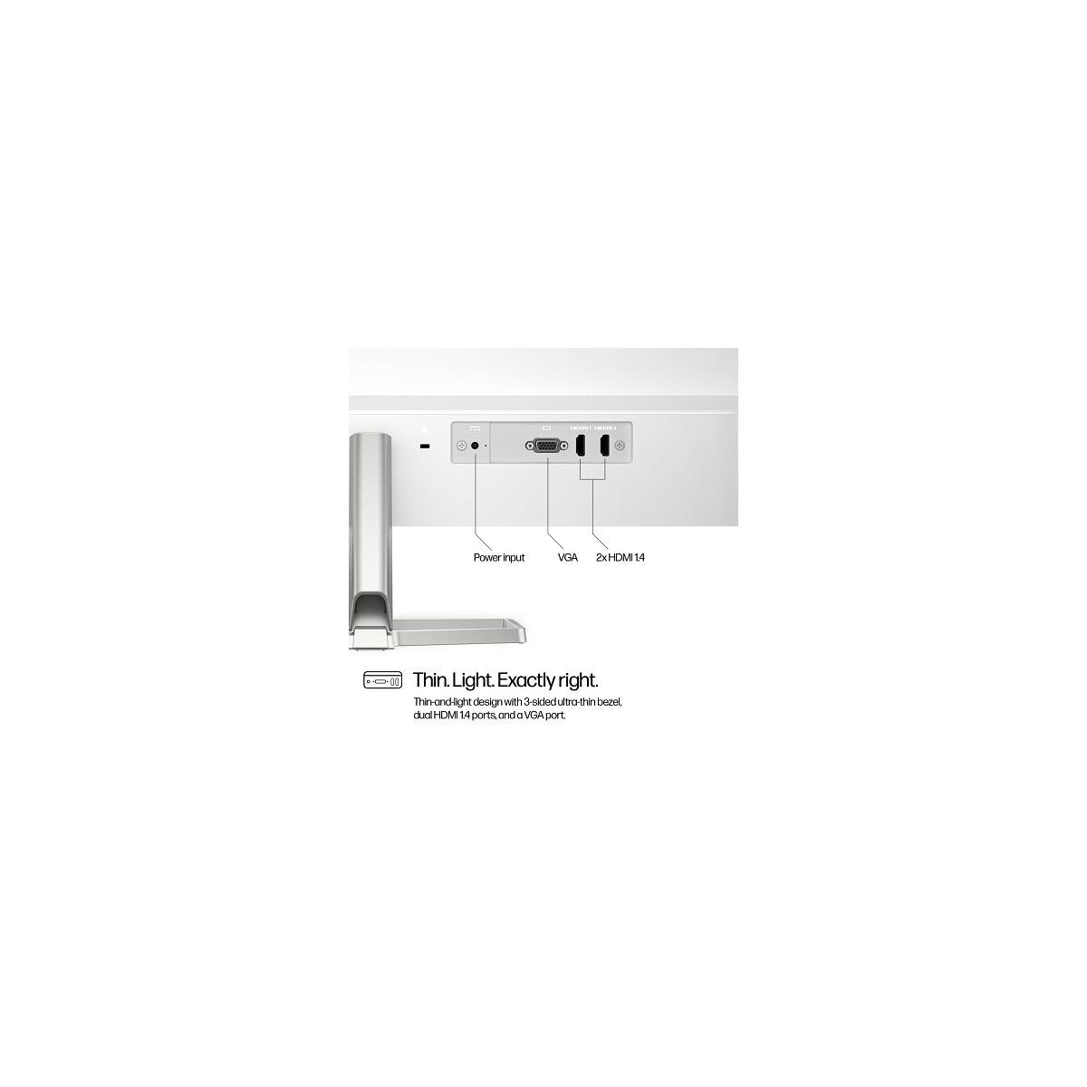 Overview - Get lost in any passion project with the HP Series 5 27-inch FHD White Monitor. Its sleek, thin-and-light design gives you the flexibility to enjoy entertainment while vibrant color and deep contrast ratio lets you see everything as it was meant to be seen. Enhance your screen time and your pastime with a higher refresh rate for a screen-tear-free experience. Tilt What's in the box? - Monitor; HDMI cable; Power adapter; AC power cord; Document kit Disclaimers - All performance specifications represent the typical specifications provided by HP's component manufacturers; actual performance may vary either higher or lower. - Ergonomic Setup Guide is available through HP Display Center. Host PC requires Windows 10 or higher. HP Display Center is available on the Microsoft store. - HP Eye Ease hardware that does not impact color accuracy used with Eyesafe. Eyesafe® certified website - Recycled plastic content percentage is based on the definition set in the IEEE 1680.1-2018 EPEAT® standard. Plastics consist of 90% Post-Consumer Recycled material, with 85% Recycled Information Technology Equipment (ITE) + 5% Ocean-Bound Plastics (PET). - 100% outer box/corrugate cushion packaging made from sustainably sourced certified and recycled fibers. Fiber cushions made from 100% recycled wood fiber and organic material. Any plastic cushions are made from >90% recycled plastic. Excludes plastic bags and plastic foam sheeting. - Based on US EPEAT® registration according to IEEE 1680.1-2020 EPEAT®. Status varies by country.