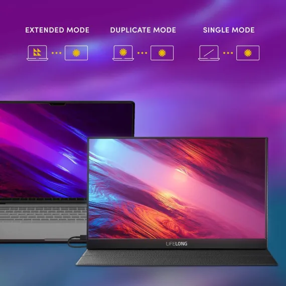 The Lifelong G70-T 15.6" FHD 1080p Portable Monitor delivers crisp, vibrant visuals on an ultra-slim HD LCD display with accurate color rendering and HDR support. With a 1920 x 1080 resolution and a 16:9 aspect ratio, it offers an immersive viewing experience from a wide 178-degree angle. Equipped with dual USB Type-C ports for seamless HD video transmission and a Mini HDMI port for flexible device compatibility, this Lifelong Portable Monitor works effortlessly with laptops, MacBooks, gaming consoles, tablets, and smartphones. It also features a low blue light mode to reduce eye strain, making it ideal for extended use whether for work, entertainment, or gaming on the go.