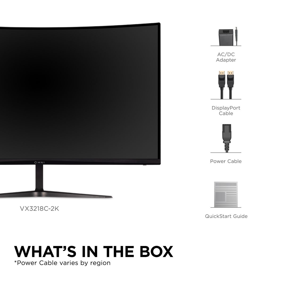 With an immersive 1500R curved screen and stunning WQHD 2560 x 1440 resolution, the ViewSonic VX3218C-2K monitor provides an incredible viewing experience for work or play. With features including a 165Hz* refresh rate, 1ms (MPRT) response time and AMD FreeSync technology, this monitor virtually eliminates screen tearing and stuttering for a fluid gaming experience. The VX3218C-2K also comes equipped with ViewSonic exclusive ViewMode™ presets, which deliver optimized screen performance for enhanced home entertainment. Enjoy watching movies, editing files and playing video games like never before. Two HDMI (v2.0) inputs and one DisplayPort (v1.2) input offer flexible connectivity for both general use and entertainment.