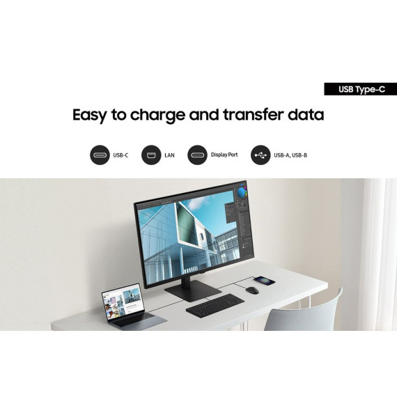 Connect it all to elevate your workspace. A USB-C port allows for 90W charging and data transfer at the same time, while a built-in LAN port offers seamless Ethernet connectivity for laptops.