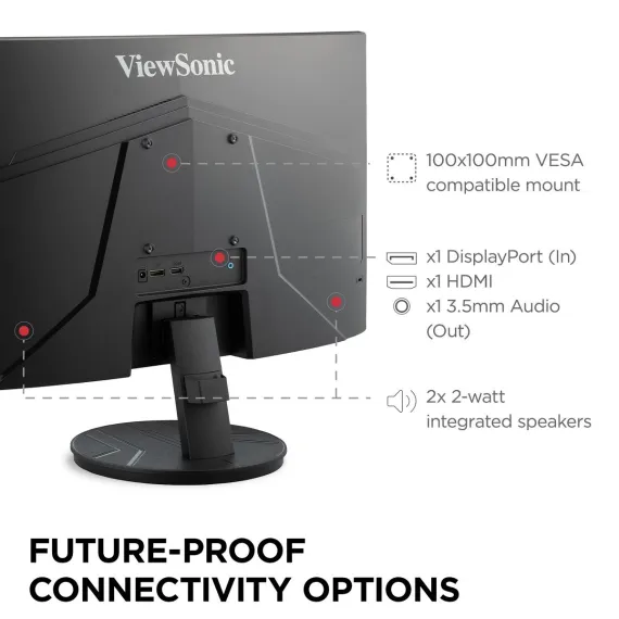 ViewSonic VA2416C 24" Full HD 1080p Frameless Curved Monitor with Variable Refresh Rate, Eye Care, HDMI, and DisplayPort Inputs for Home and Office