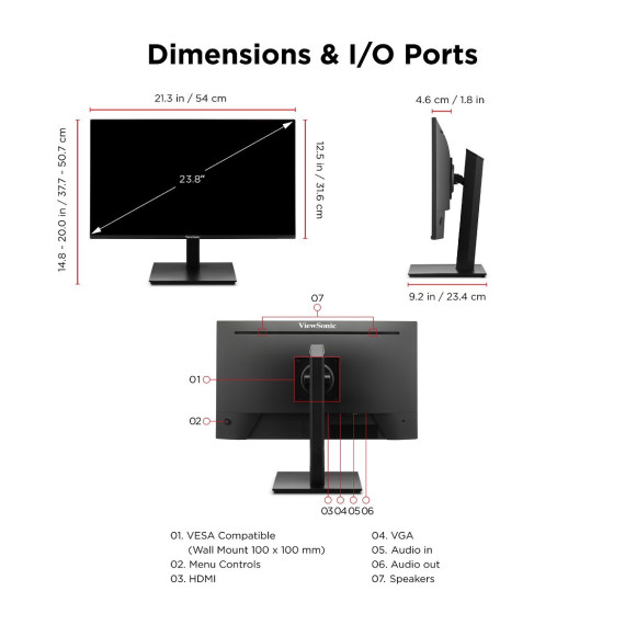 Viewsonic VA2448-MHJ 24 Inch IPS 1080p Monitor with 120Hz, Advanced Ergonomics, Eye Care, HDMI, and VGA Inputs for Home and Office