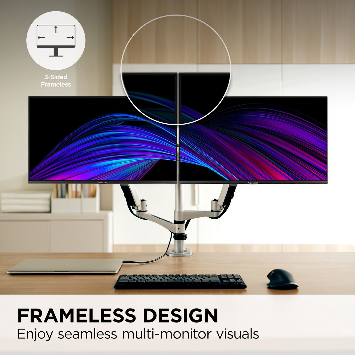 ViewSonic VA2456A-MHD_H2 Dual Monitor Pack Head-Only 1080p IPS Frameless Monitors with 120Hz, Eye Care, VESA Mountable, HDMI, DisplayPort, and VGA