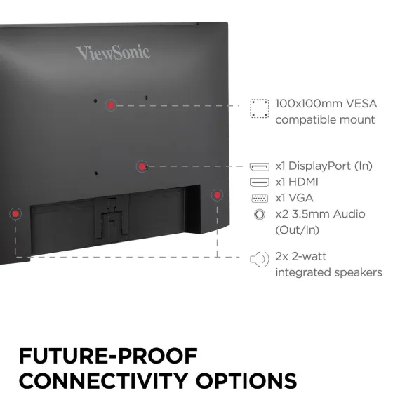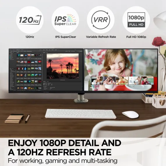 ViewSonic VA2456A-MHD_H2 Dual Monitor Pack Head-Only 1080p IPS Frameless Monitors with 120Hz, Eye Care, VESA Mountable, HDMI, DisplayPort, and VGA