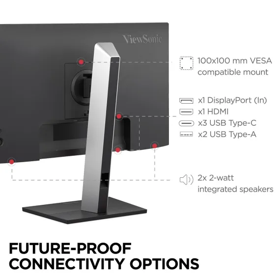 ViewSonic VG2452 24 Inch IPS 1080p Ergonomic Monitor with Tilt, Swivel, Pivot, Height Adjust, 100Hz, USB Hub, HDMI, DisplayPort, and 65W USB C Inputs