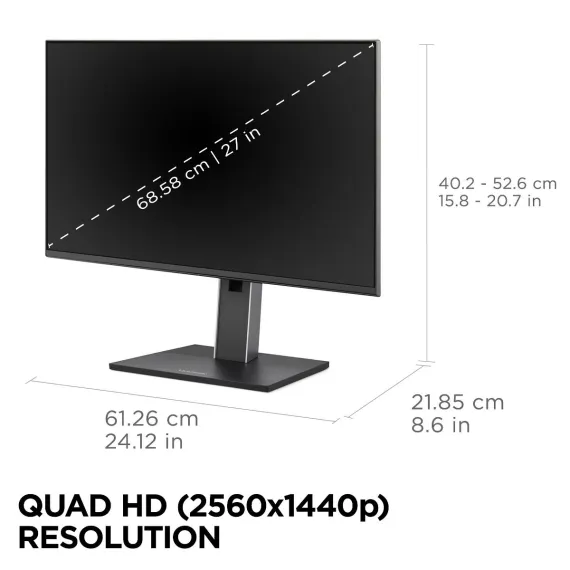 ViewSonic VG2752-2K 27" IPS 1440p Ergonomic Monitor with Tilt, Swivel, Pivot, Height Adjust, 100Hz, USB Hub, HDMI, DisplayPort, and 65W USB-C Inputs