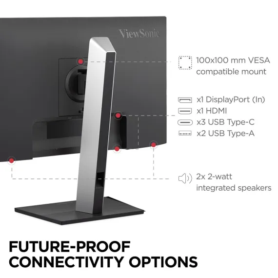 Transform your workspace with the ViewSonic 27” VG2752-2K monitor. This 27" high-performance monitor offers stunning 2K resolution and SuperClear® IPS panel technology for vibrant, true-to-life colors. With USB-C connectivity, users can easily streamline their setup and cut out the cable clutter as they enjoy 65W of charging, data, audio, video, and power over a single cable. An HDMI port, DisplayPort, and an integrated USB hub (x2 USB-C ports, x2 USB-A ports) make it easy to connect your favorite devices. Designed for all-day comfort, this monitor features an ergonomic stand that allows for height, pivot, swivel, and tilt adjustments, while a 35-degree tilt makes it ideal for use with standing desks and team discussions. Unlock a seamless dual-monitor experience by pairing the VG2752-2K with the VG2758-2K docking monitor via USB-C daisy-chaining—delivering a sleek, clutter-free setup designed to elevate your productivity. Sustainability meets convenience with biodegradable packaging, a quick-deploy stand, integrated cable management, and a built-in client mount for a faster, cleaner installation.
