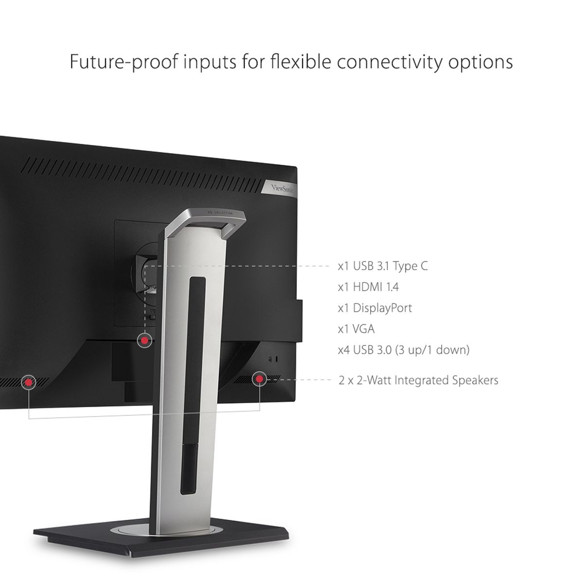 ViewSonic VG2755 27 Inch IPS 1080p Monitor with USB C 3.1, HDMI, DisplayPort, VGA and 40 Degree Tilt Ergonomics for Home and Office
