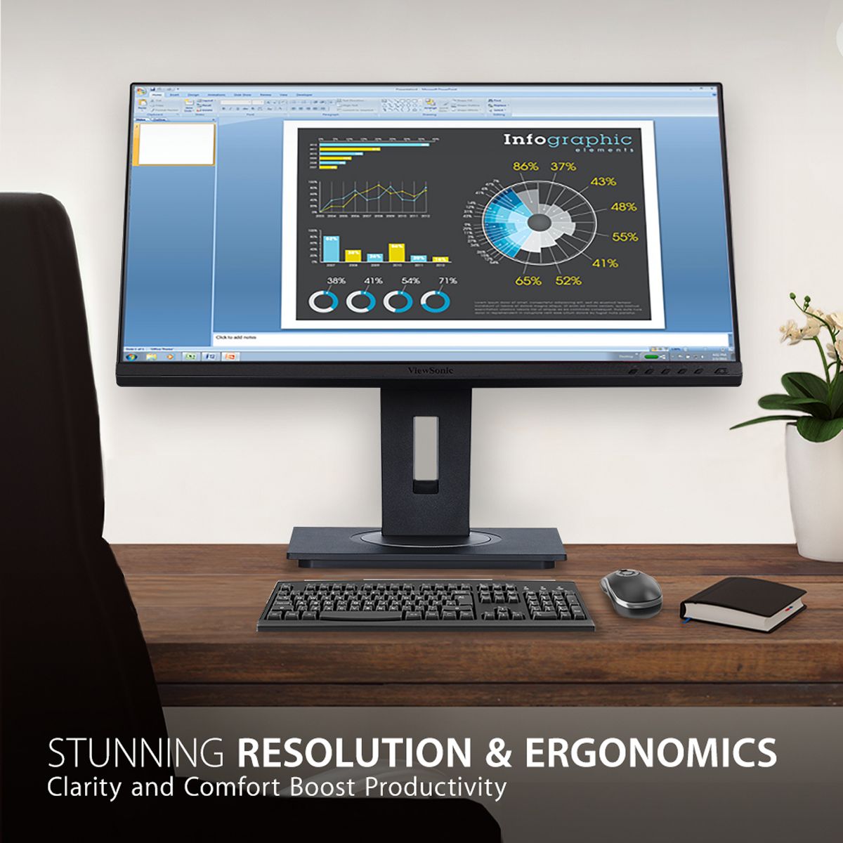 Designed for the modern day office, the ViewSonic VG2755 monitor delivers an efficient end-to-end enterprise experience. USB 3.1 Type-C connectivity provides charging power, video, and audio over a single connector for convenience and reduced cable clutter. SuperClear IPS panel technology delivers wide-angle viewing and incredibly vivid colors, while 3-sided thin bezel design provides a seamless viewing experience for multi-monitor setups. For enhanced productivity, an advanced ergonomic design offers a wide range of customizable adjustments for maximum comfort including pivot, swivel, height adjustment, and tilt. With the ability to tilt an impressive 40-degrees, this 27-Inch monitor is ideal for users who prefer to work while standing up, as well as for those who like to use their screen for group discussions. Along with USB 3.1 Type-C, additional connectivity options include HDMI, DisplayPort, VGA, and USB 3.0. This monitor is also shipped in eco-friendly biodegradable packaging, along with an easy-to-install quick release stand that makes for simple out-of-the box setup. The quick release stand also includes an integrated client mount and cable management features.