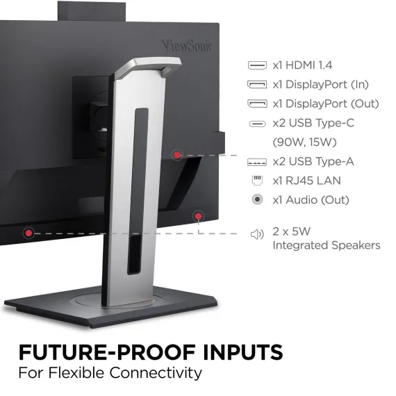 ViewSonic VG2757V-2K 27 Inch 1440p Video Conference Docking Monitor with Windows Hello Compatible IR Webcam, Advanced Ergonomics, and 90W USB C for