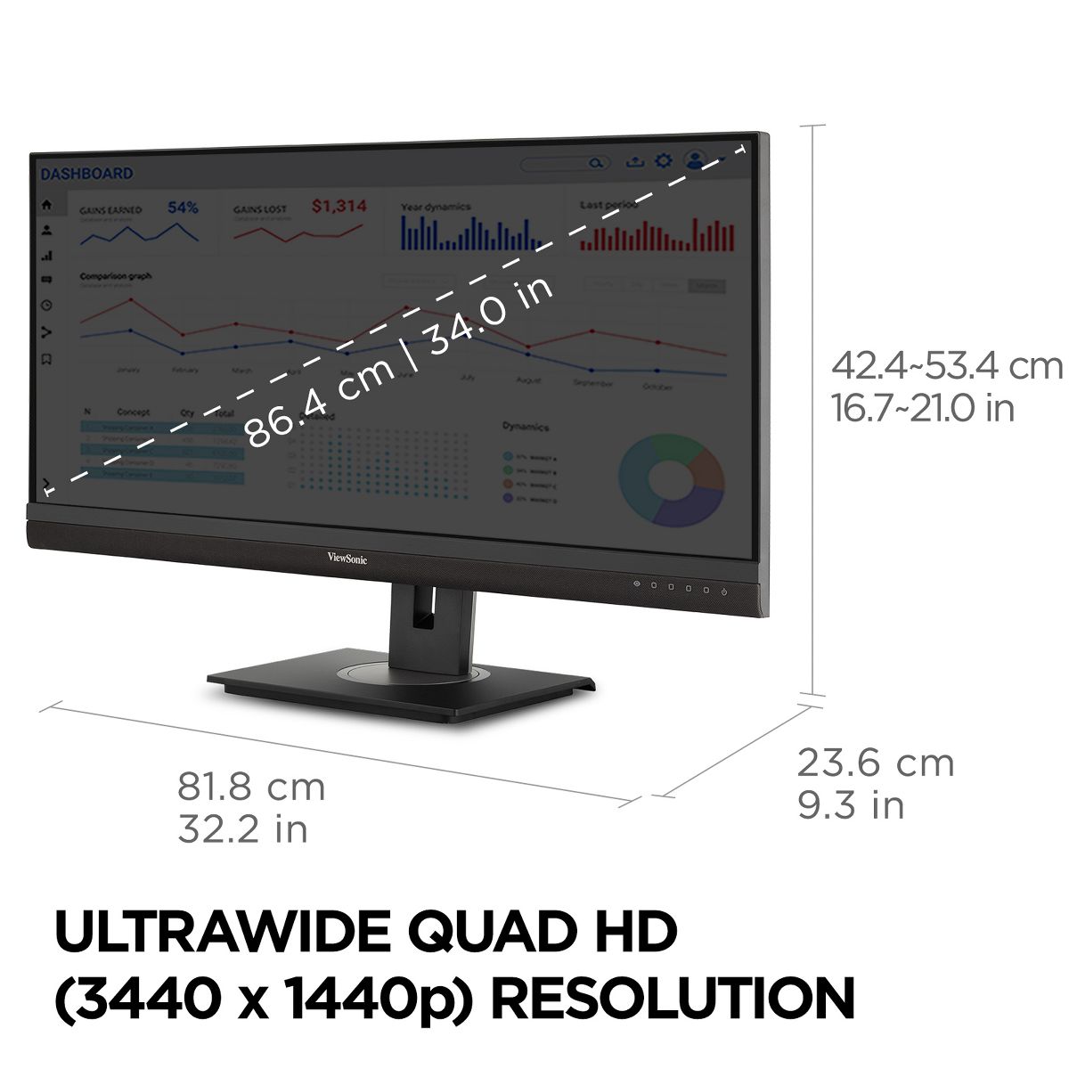 ViewSonic VG3456A 34 Inch 21:9 UltraWide QHD 1440p IPS Monitor with Ergonomics Design, 100W USB C, Docking Built-In, Gigabit Ethernet for Home and