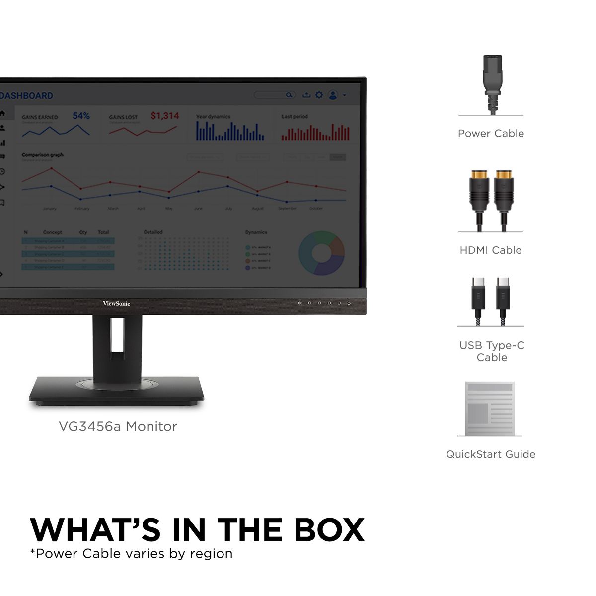 Featuring an ultra-wide 34” screen with a design to boost productivity and maximize output, the ViewSonic® VG3456A is a docking monitor that transforms your desktop into a streamlined and efficient workspace. With WQHD 3440 x 1440 resolution, the VG3456A delivers 2.4 times more pixels than standard Full HD monitors, giving users more detail for enhanced productivity. A 21:9 aspect ratio and slim bezels provide extra screen real estate so users can display more content, switch between applications more quickly, view documents side by side, and view multiple windows at once. Enjoy reliable and flexible network connectivity with the integrated gigabit Ethernet port while the latest USB Type-C connectivity provides up to 100W power delivery to your laptop. That’s not all, the integrated USB hub also provides single-cable simplicity for connecting and charging your peripherals and accessories. In addition, the included vDisplayManager software gives you quick and easy OSD control, as well as customized screen templates for easy multi-tasking. This monitor is also shipped in eco-friendly biodegradable packaging, along with an easy-to-install quick release stand that makes for quick deployment and a lower total cost of ownership.