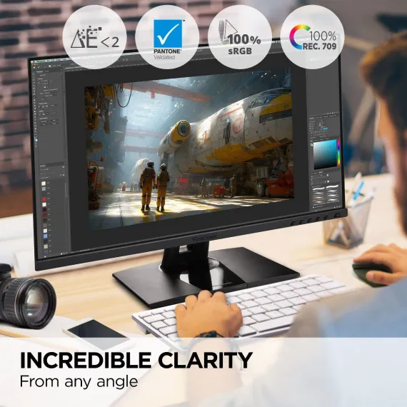 Engineered to deliver unmatched color accuracy crucial for professional applications, the ViewSonic VP2456A 24" (23.8" viewable) Full HD monitor displays your work with the vivid and lifelike color it deserves. With a SuperClear® IPS panel and a sleek 3-sided frameless design, the VP2456A provides a near-seamless viewing experience ideal for multi-monitor setups. The VP2456A is equipped with USB-C for single cable connectivity to deliver video, audio, and 90W of power delivery. To ensure precise, uniform color, each of our monitors is factory calibrated to deliver an amazing Delta E <2, so you can be confident what you see on screen is what your clients and customers will see as well.