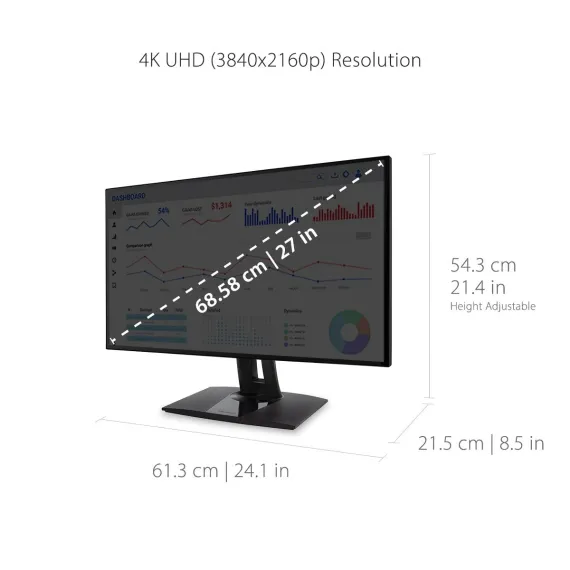 ViewSonic VP2768a-4K 27 Inch Premium IPS 4K Monitor with Advanced Ergonomics, ColorPro 100% sRGB Rec 709, 14-bit 3D LUT, Eye Care, HDMI, USB C,