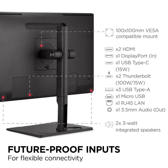 ViewSonic VP2776T-4K 27 Inch 4K UHD IPS Monitor with Advanced Ergonomics, Thunderbolt 4, 100% sRGB Rec 709, Pantone Validated, USB C, HDMI 2.1, and DP