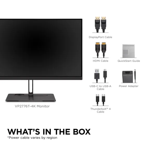 The VP2776T-4K ColorPro Monitor is a powerhouse for creative professionals, engineers, programmers and more. This 27” Pantone Validated display delivers exceptional 4K visuals, accurate DCI-P3 colors, and HDR400 for deep contrast. Its integrated Thunderbolt 4 docking station offers 100W power delivery, RJ45 Ethernet, and multiple connectivity options such as DisplayPort, HDMI, and a USB hub for a streamlined workspace. With dual 4K daisy chaining via Thunderbolt 4, you can easily expand your display setup for maximum productivity.